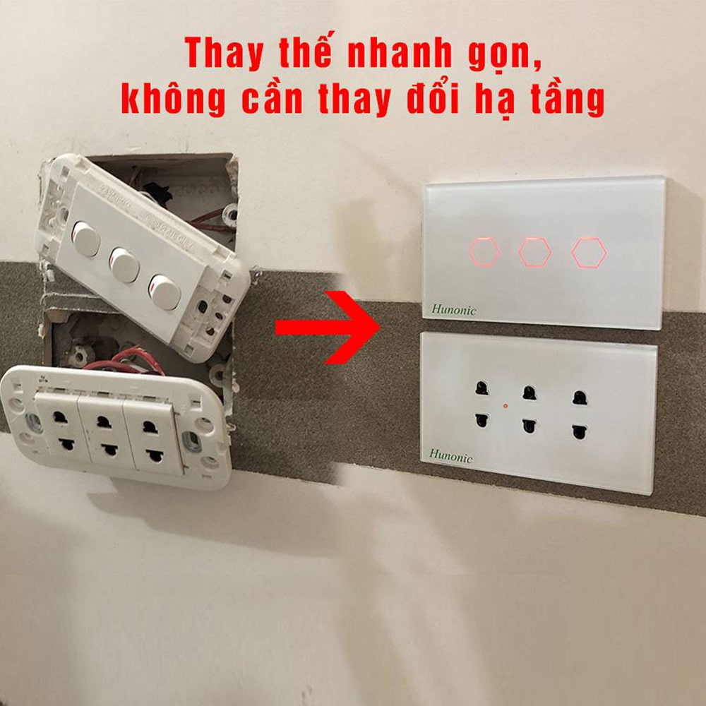💠 Nhà mới xây hay dù là nhà truyền thống thì đều có thể lắp công tắc thông minh của Hunonic. Chỉ cần tháo công tắc cũ ra, lắp công tắc Hunonic là xong.